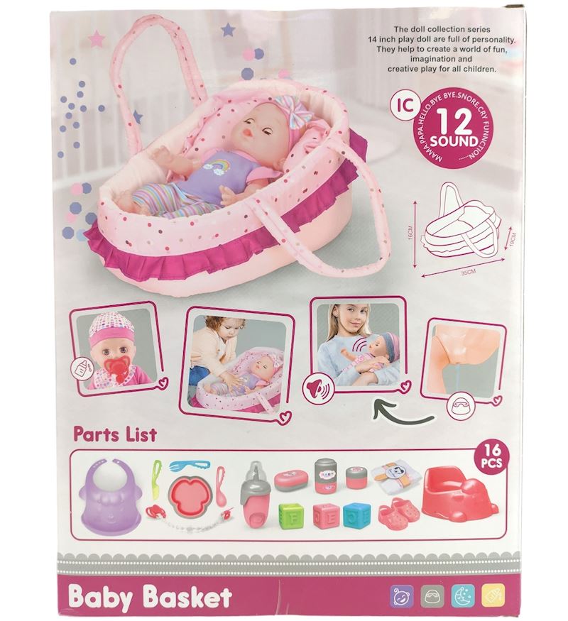Baby in Tasche mit div Zubehör mit 12 Sound, Tasche 35x20 cm