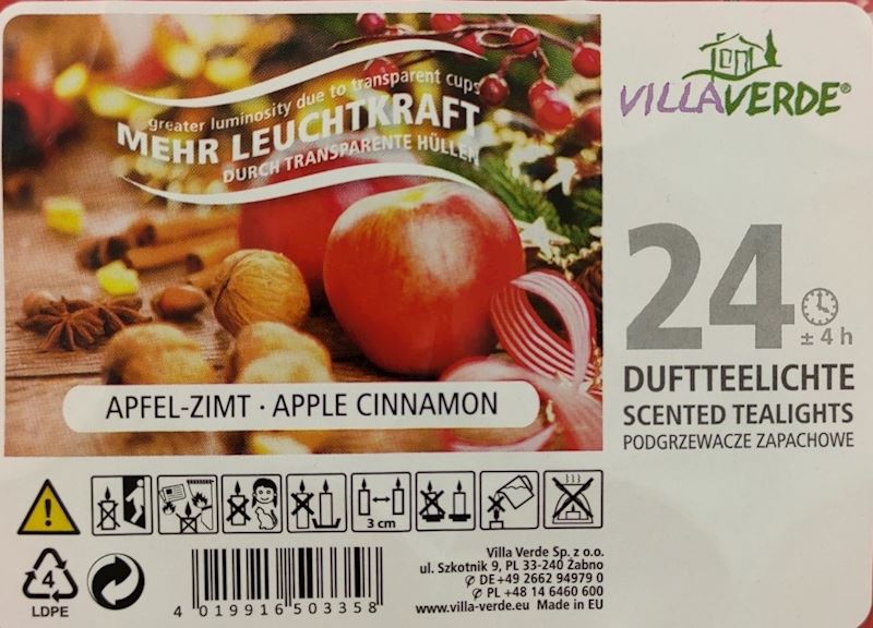 Duftteelichter Apfel-Zimt Verpackung à 24 Stk. 4 Std.
