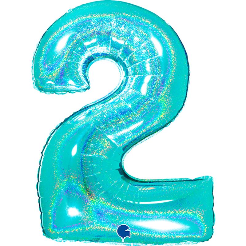 Folienballon Glitter Zahl 2 türkis holo, 102 cm im Beutel