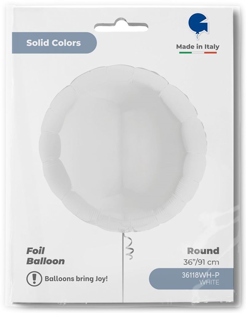 Folienballon Rund weiss 91 cm einzeln verpackt