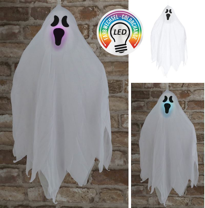 Geist mit LED zum Hängen weiss 50 cm, inkl. Knopfbatterien