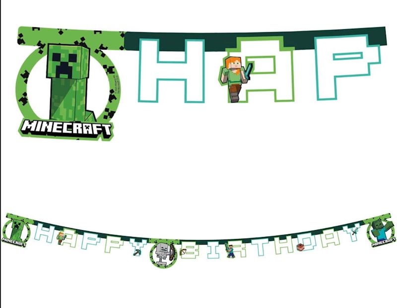 Girlande Happy Birthday 2 m Minecraft aus Karton