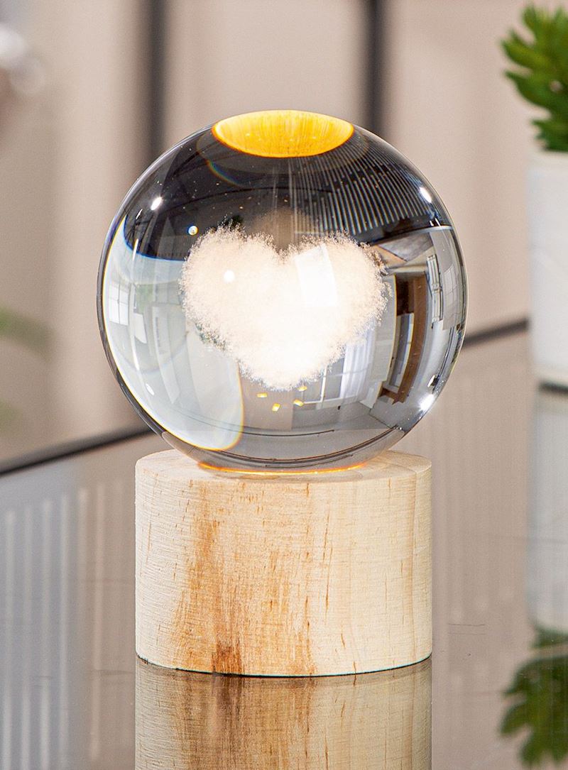 Glaskugel auf Holzsockel LED mit Herz 12x 8 cm inkl. Batt.