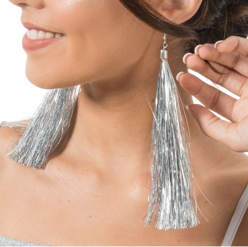 Glitzer Ohrringe silber 17 cm