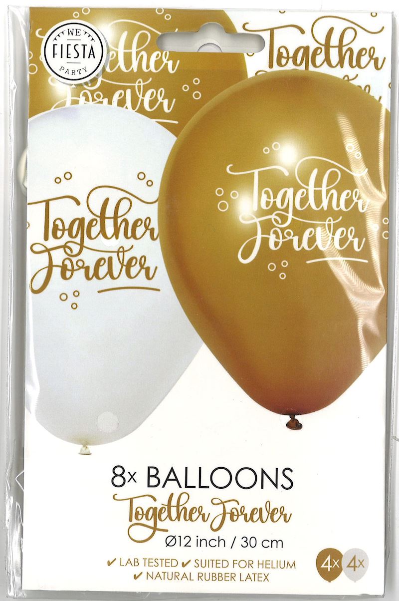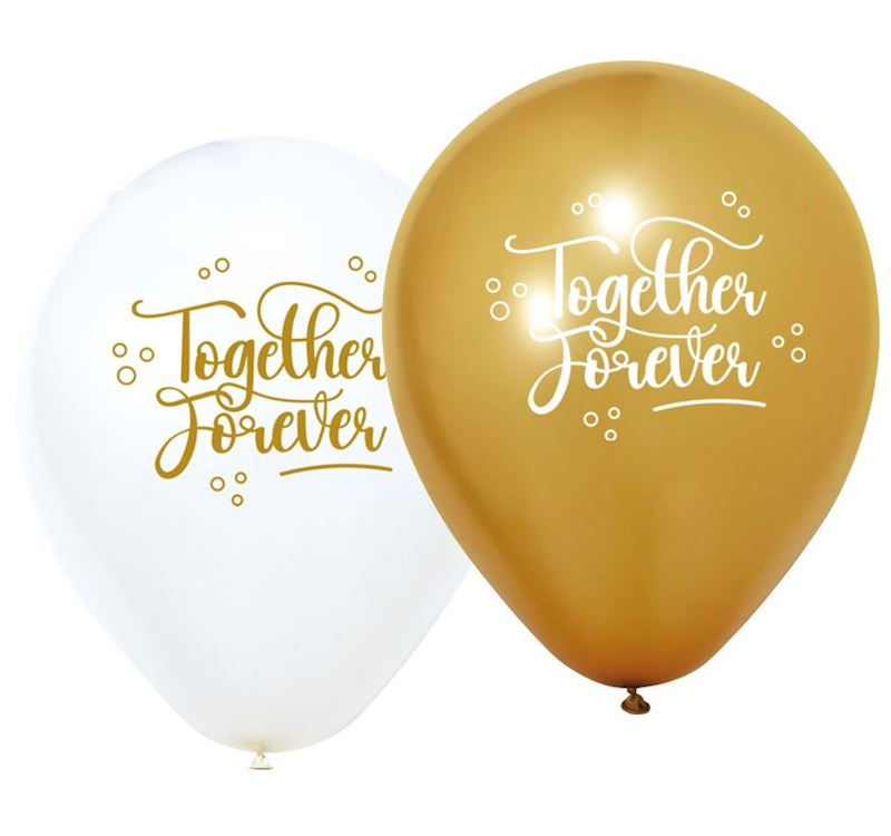 Gummiballone 8 Stk. Together Forever gold/weiss