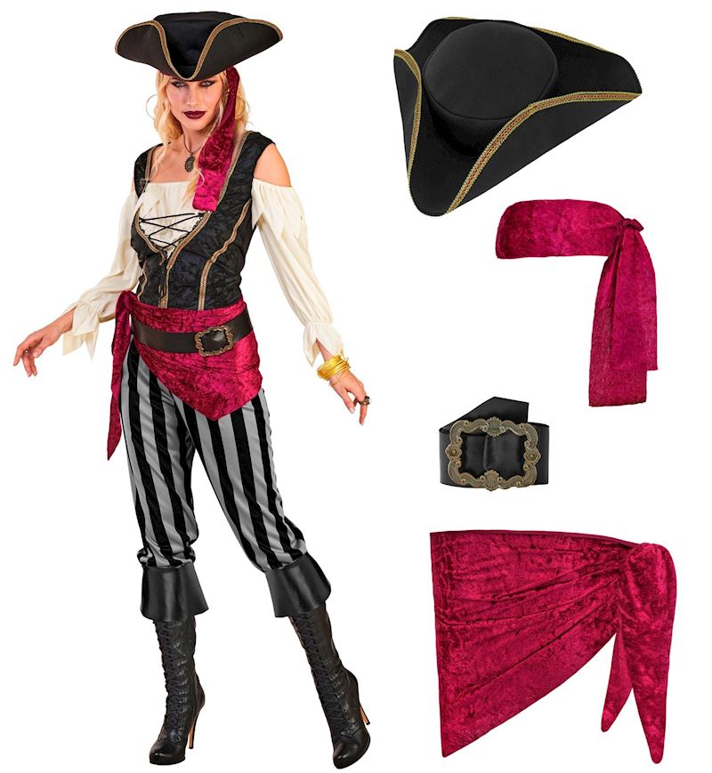 Kostüm Piratin Grösse XS Hose,Hemd,Gilet,Hut,Gurt,Band