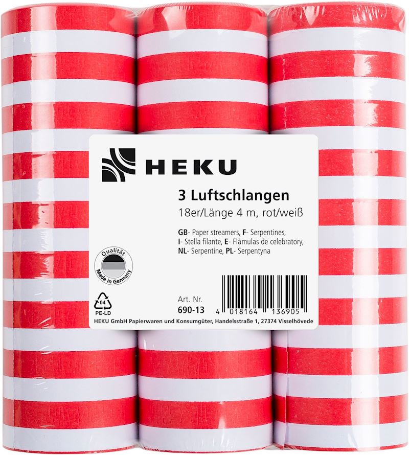 Luftschlangen rot/weiss 3 Stk. 18er/4 m