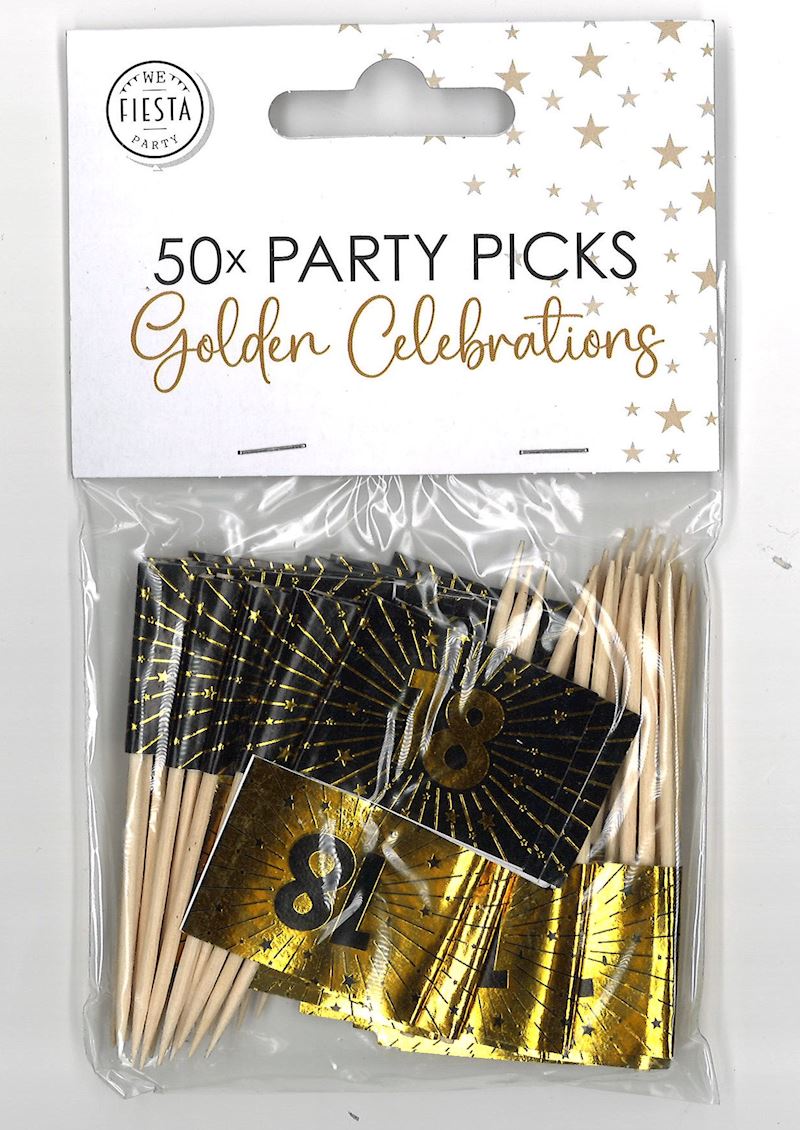 Party Picker Fahne 18, 50 Stk. Golden Celebrations