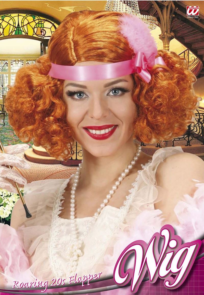 Perücke 20er Jahre Frau rothaarig, mit Band und Feder