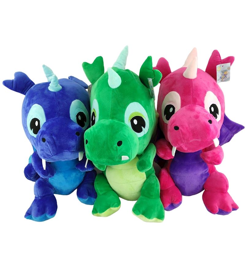 Plüsch Drachen 36 cm 3 Farben blau, grün, pink
