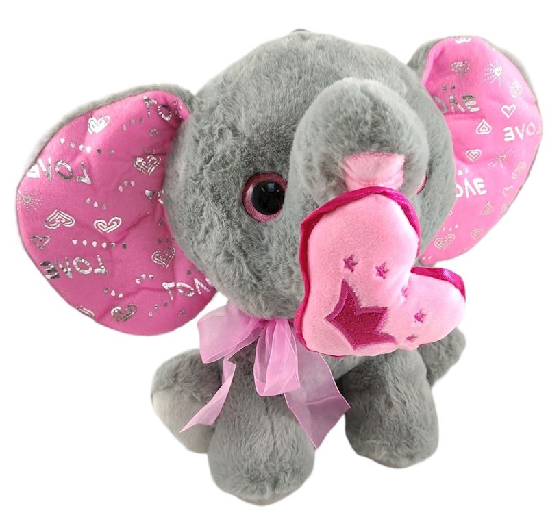 Plüsch Elefant mit Herz 35 cm grau/pink