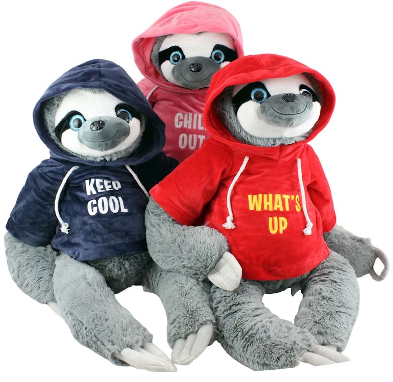 Plüsch Faultier mit Shirt 45/65 cm, 3 Farben sort.