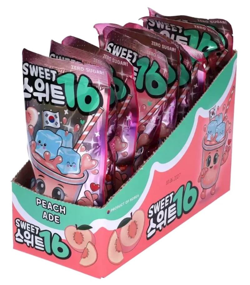 - Wasser, Geschmacksverstärker: Erythrit (E968); 0.6% Pfirsichtkonzentrat, Aromen, Säureregulatoren: Citronensäure (E330), Natriumcitrat (E331), Süssungsmittel: Sucralose (E955), Steviol-Glykoside (E960a); Antioxidationsmittel: Ascorbinsäure (E300); Farbstoff: Allurarot AC (E129)