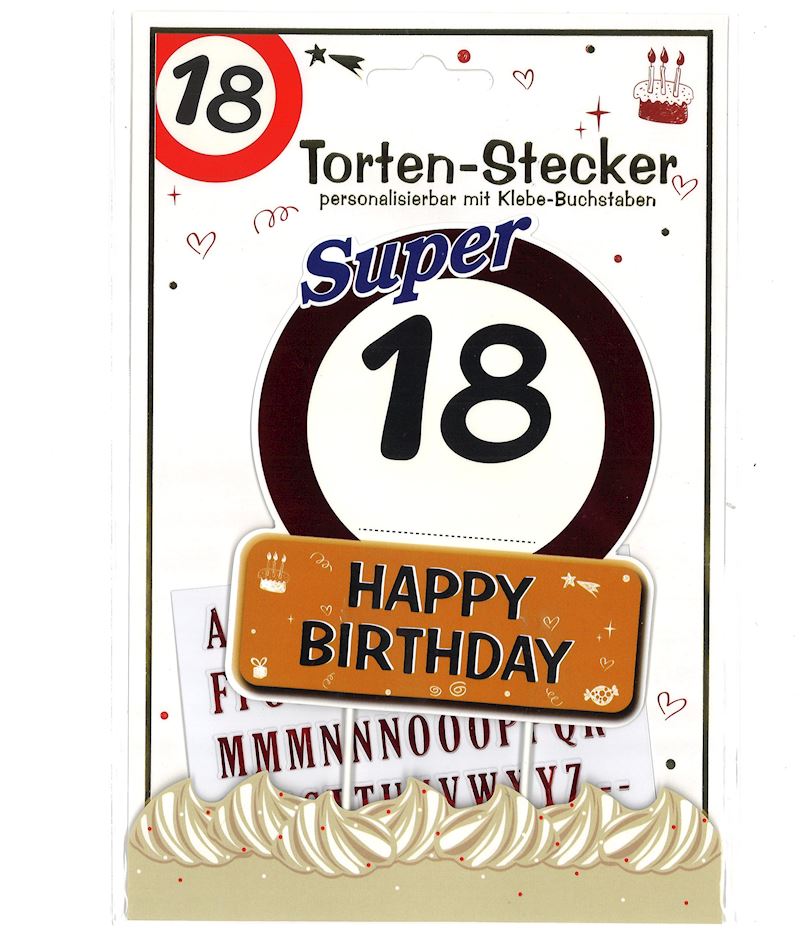 Tortendeko Happy Birthday 18 Jahre, mit Klebebuchstaben