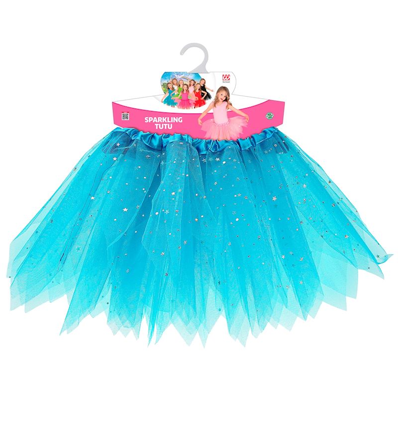 Tutu hellblau giltzernder Stoff 30 cm Kindergrösse
