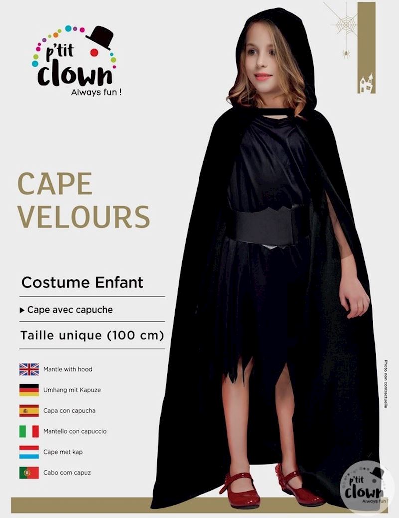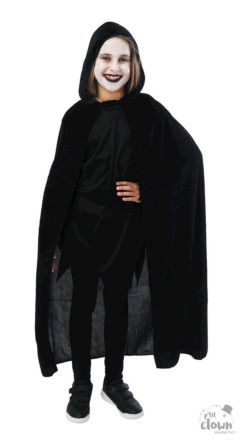 Umhang mit Kapuze aus Samt Kindergrösse 1 m schwarz