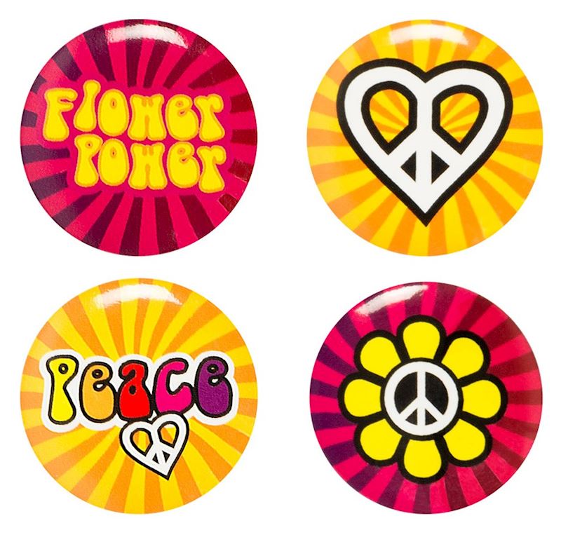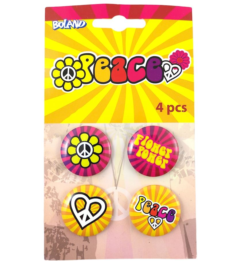 Buttons Hippie 4 Stk. 3 cm mit Anstecknadel