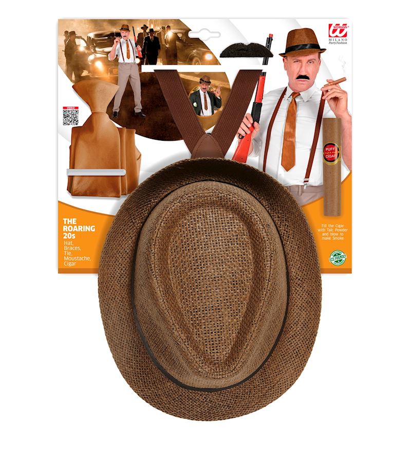 Die Wilden 20er Set mit Hut, Zigarre, Schnurrbart, Krawatte