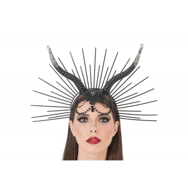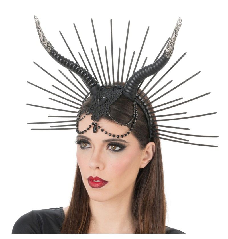Gothic Haarreif mit Hörnern und schwarze Perlen
