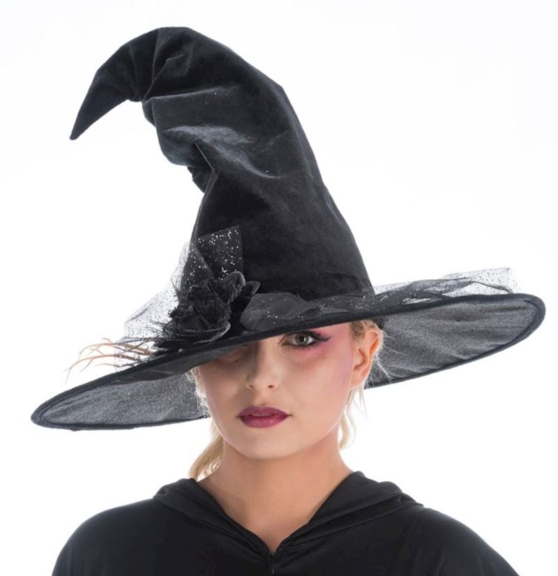 Hexenhut schwarz mit Deko