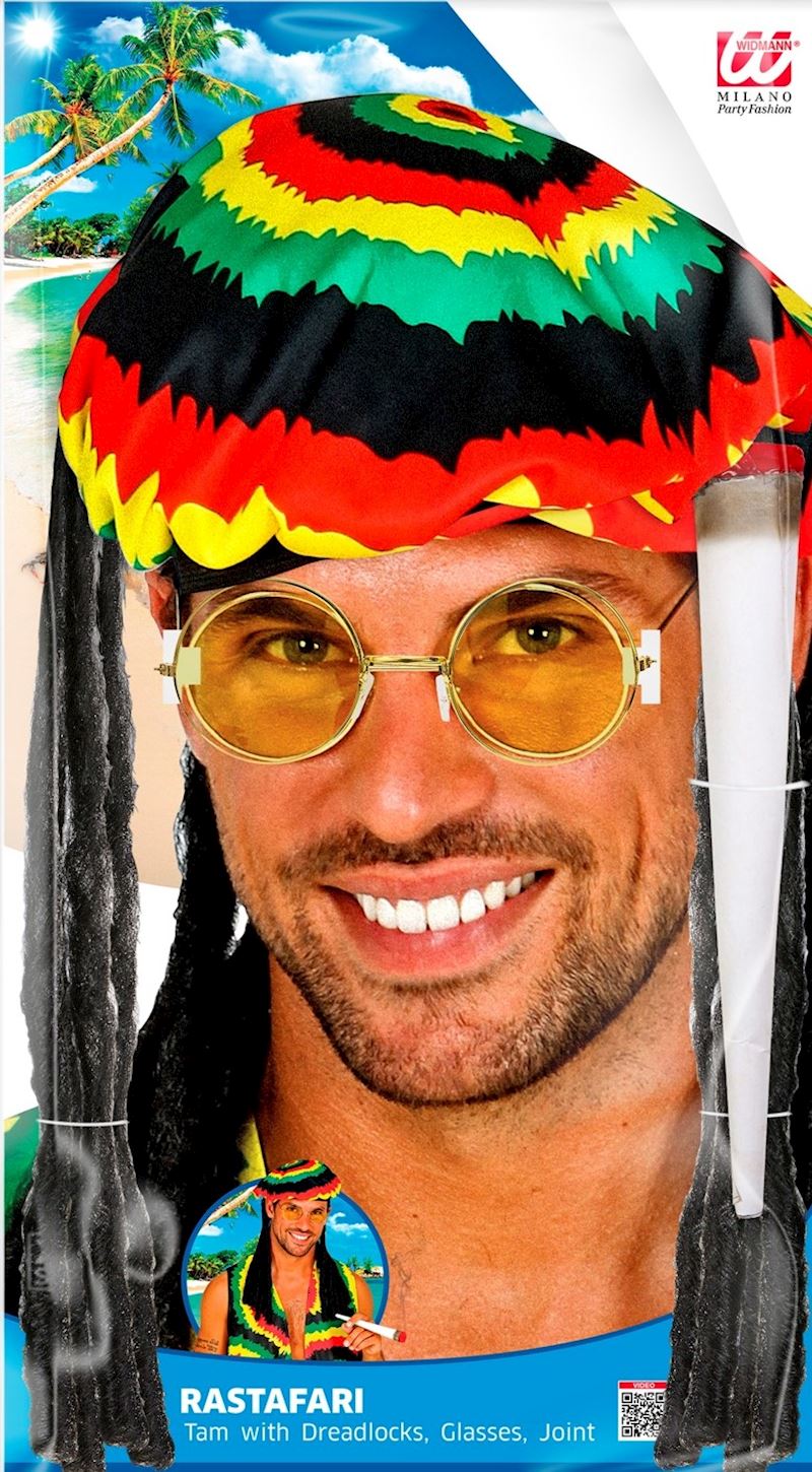 Rastamann Set Mütze mit Haaren Brille und Joint