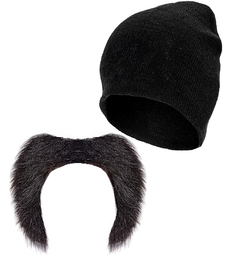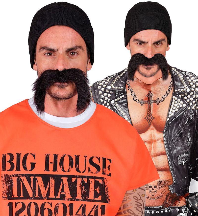 Set Häftling/Biker schwarz Mütze Schnurrbart