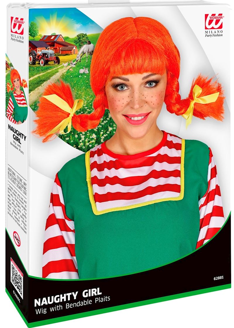 Perücke freches Mädchen mit orangen formbaren Zöpfen