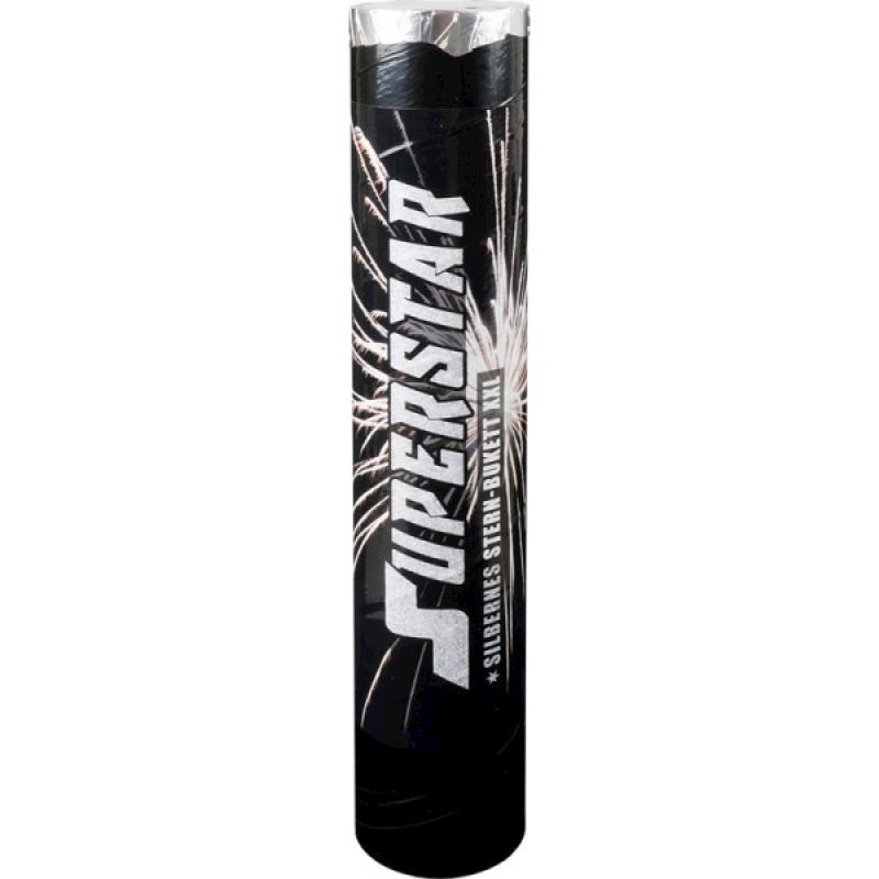 Riesiges Einzelbukett aus langbrennenden Silbersternen, abgefeuert aus einem 40 cm langem Mörser. Im Gegensatz zu einer Rakete, bleibt das Rohr am Boden und feuert nach der Zündung den Effektkörper in den Himmel. Darum muss der Superstar mit Hilfe der vorgefertigten Metallhalterung oder eines Holzpfahles stabil befestigt werden. Beachten Sie dafür das Video welches auf der Seite der Metallhalterung hinterlegt ist. Der Superstar wird in der Schweiz entwickelt und hergestellt, daher ist dies ein exklusives Schweizer Qualitätsprodukt!