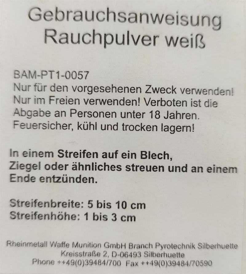 Rauchpulver weiss 1kg Beutel mit Protokoll