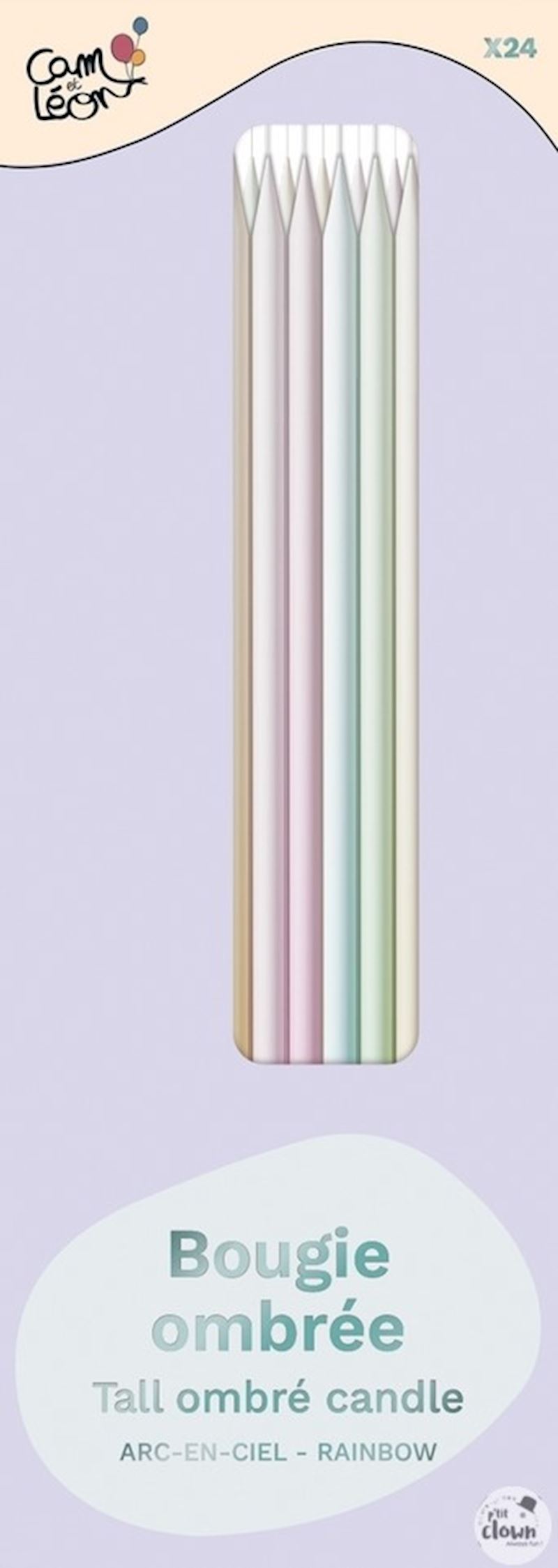 Kuchenkerzen mit Halter 24 Stk Rainbow pastell