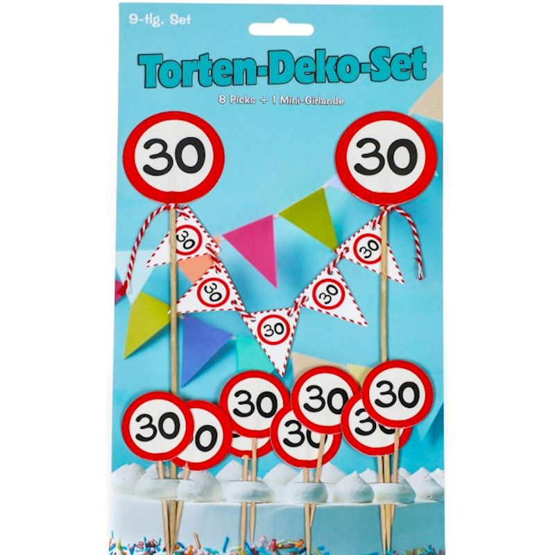 Torten-Deko-Set 30 Jahre 9tlg. 10 Picker & Minigirlande