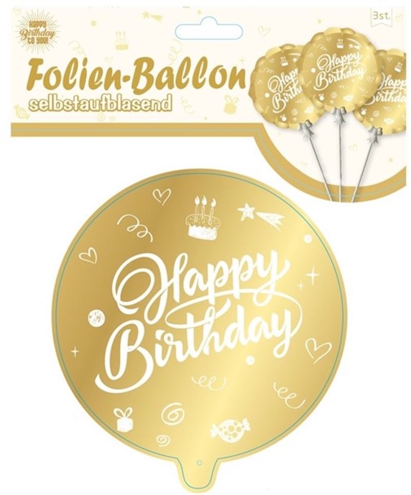Ballon Set 3er, Happy Birthday, selbstaufblasend