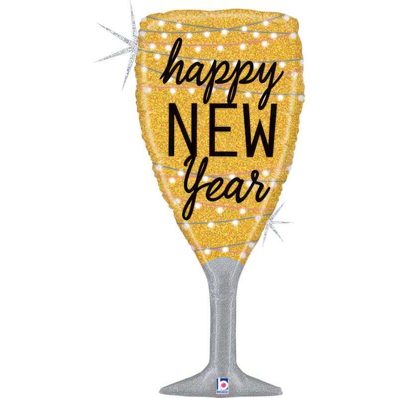 Folienballon Champagnerglas Happy New Year 79 cm einzeln