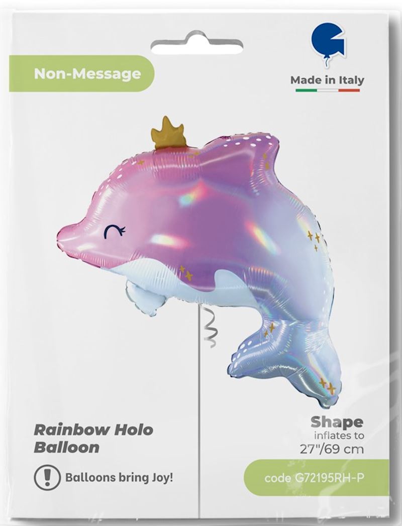 Folienballon Delfin mit Krone 69 cm einzeln verpackt