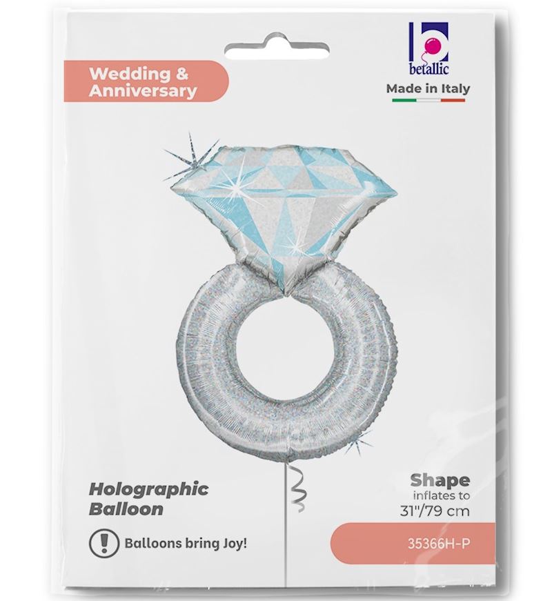 Folienballon Ehering Platin im Beutel, 79 cm holographisch