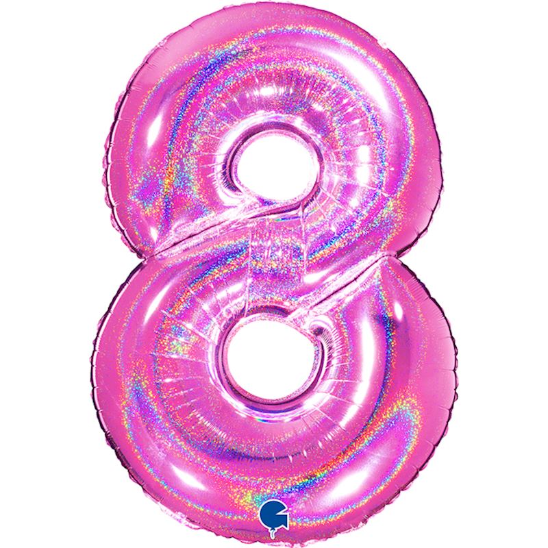 Folienballon Glitter Zahl 8 pink holo, 102 cm im Beutel