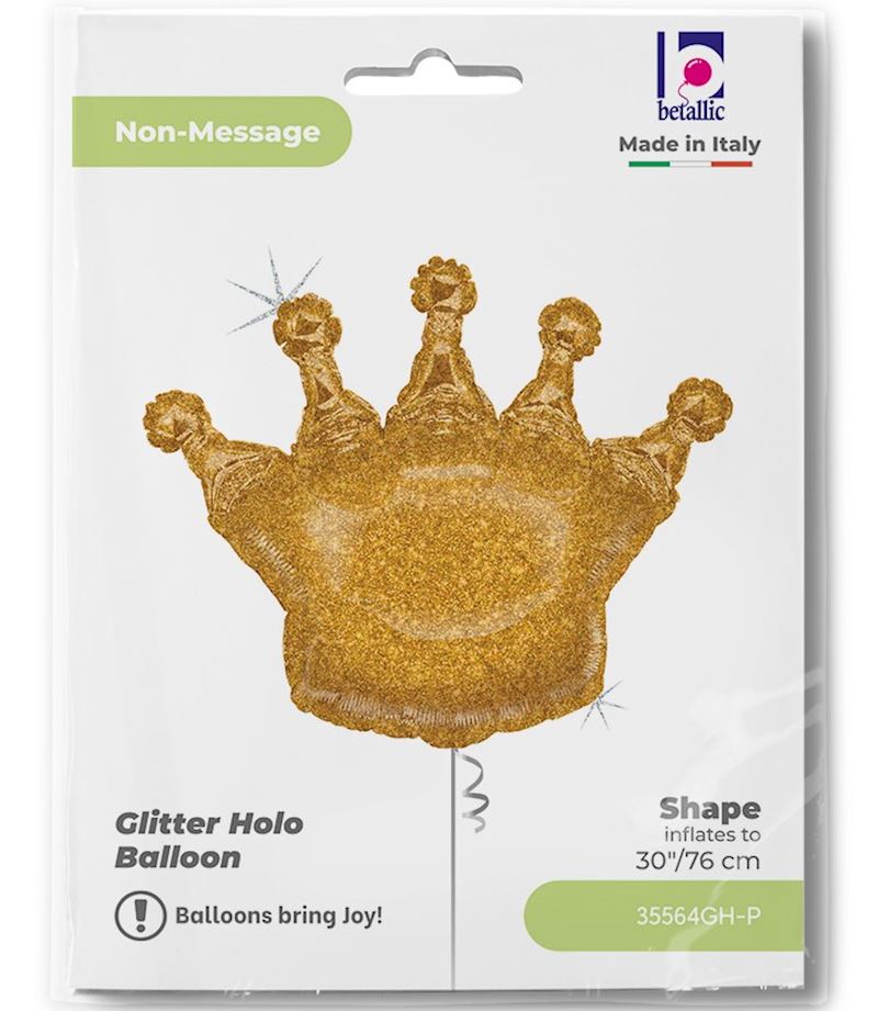 Folienballon Glitzerkrone Gold im Beutel, 76 cm holographisch