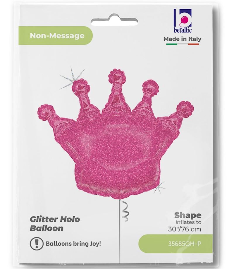 Folienballon Glitzerkrone Pink im Beutel, 76 cm holographisch