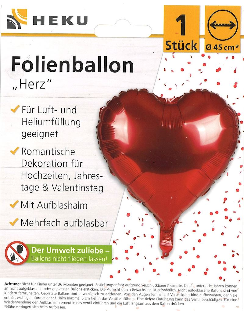 Folienballon Herz rot 45 cm DM mit Aufblashalm