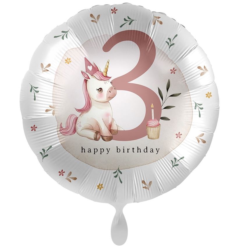 Folienballon Kindergeburtstag Happy Birthday 3 Jahre Einhorn