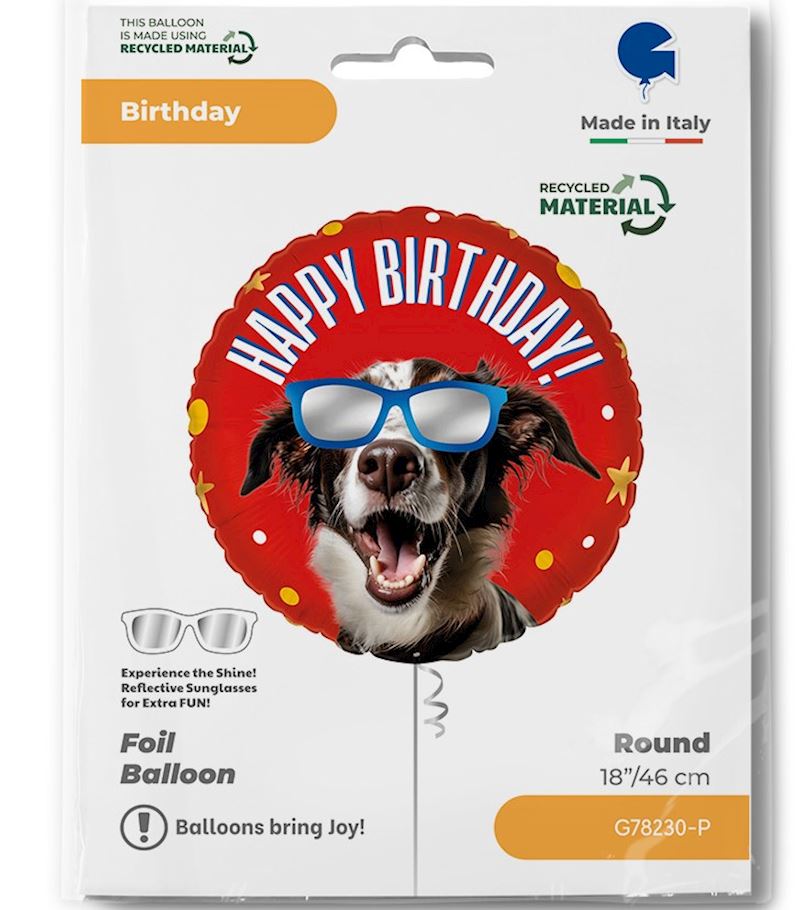 Folienballon cooler Hund Happy Birthday 46 cm reflektierende