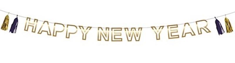 Buchstabengirlande Happy New Year, 2.65 m & 4 Quasten