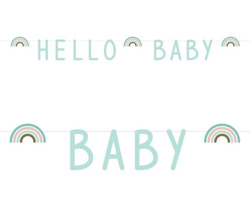 Buchstabengirlande Rainbow Mint Hello Baby 2.50 m x 9 cm