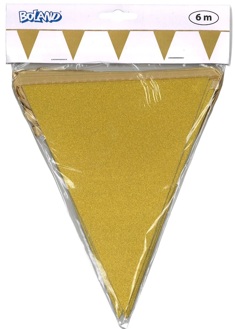Glitter Wimpelkette Karton 6 m gold 12 Wimpel 20x16 cm