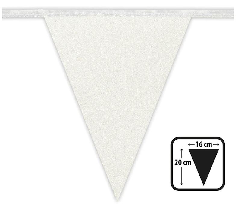 Glitter Wimpelkette Karton 6 m weiss 12 Wimpel 20x16 cm