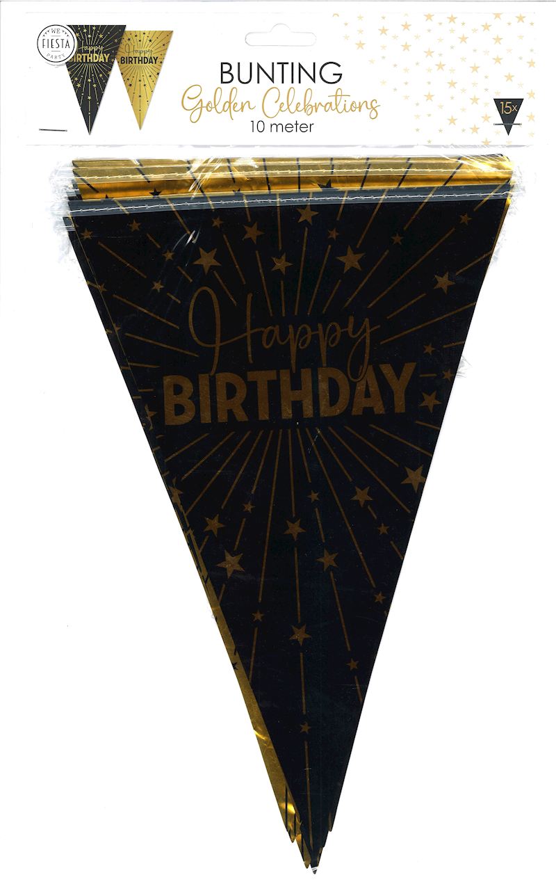 Wimpelkette Happy Birthday Golden Celebrations 10 m
