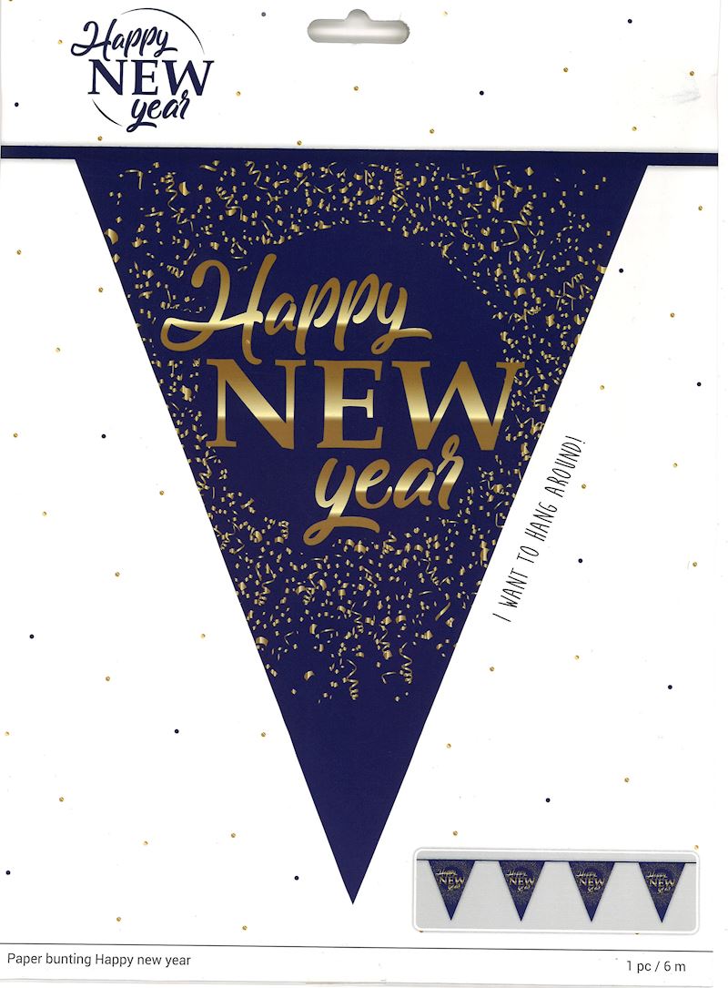 Wimpelkette Happy New Year 6 m aus Karton Wimpel