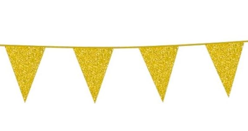 Wimpelkette glitzernd gold 6 m, Wimpel 16x20 cm, Karton