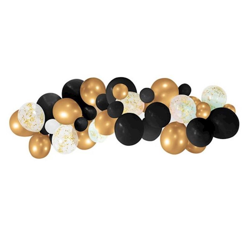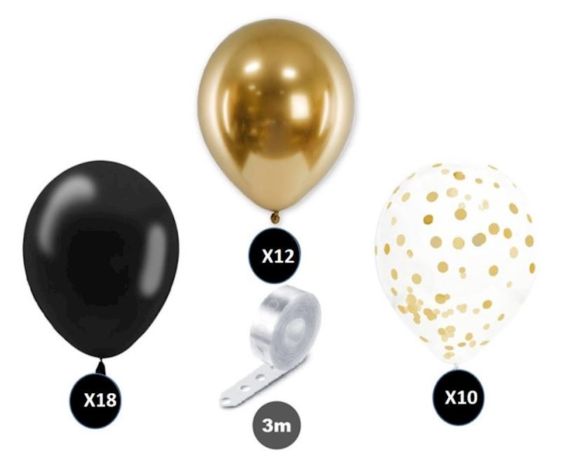 Kit Ballongirlande 40 Ballone gold/schwarz 30 cm und Band