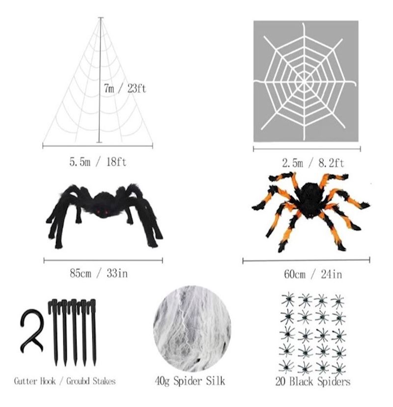 Dekoset Halloween 2 Spinnen & 2 Netze 5x7 m